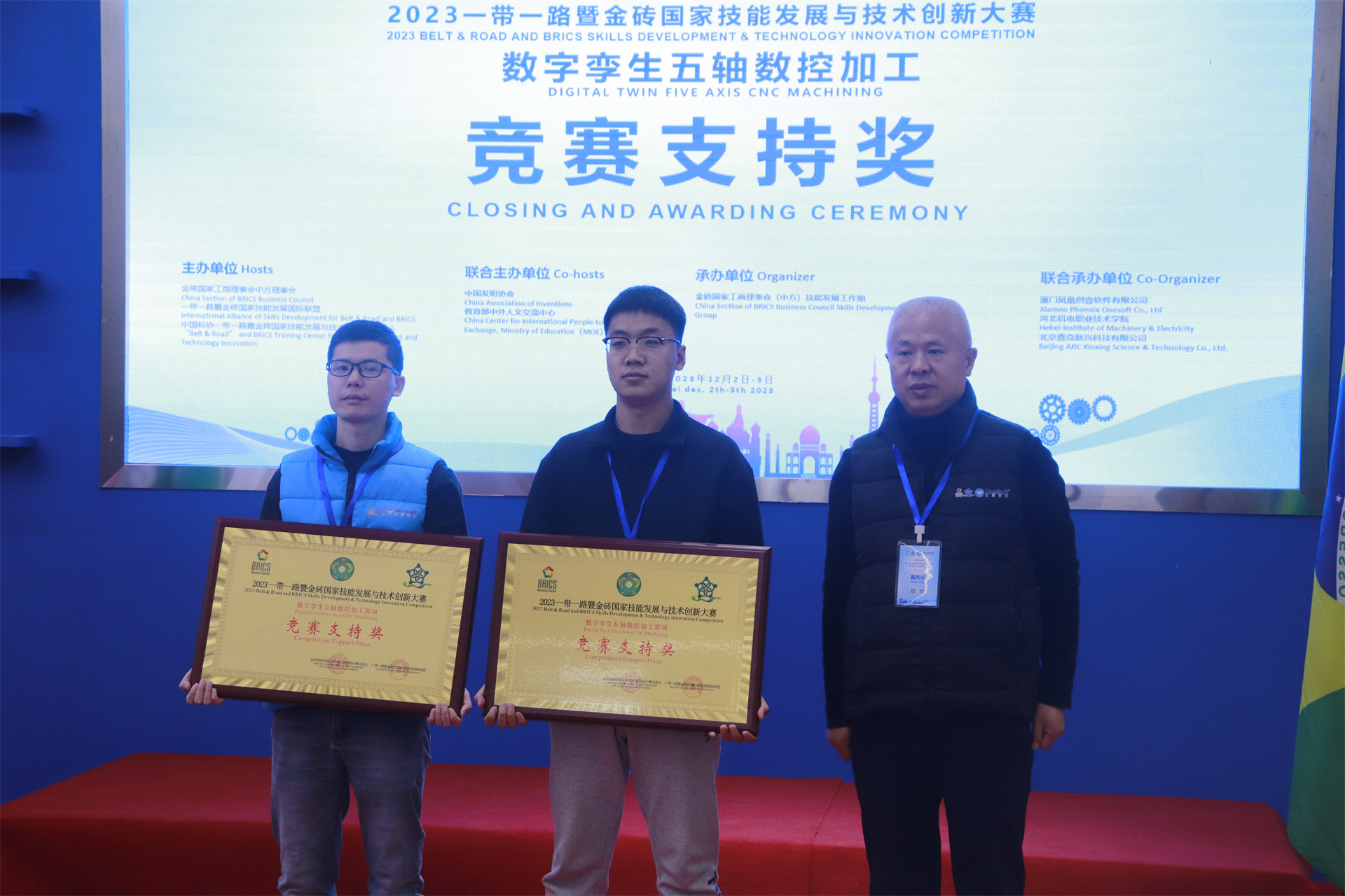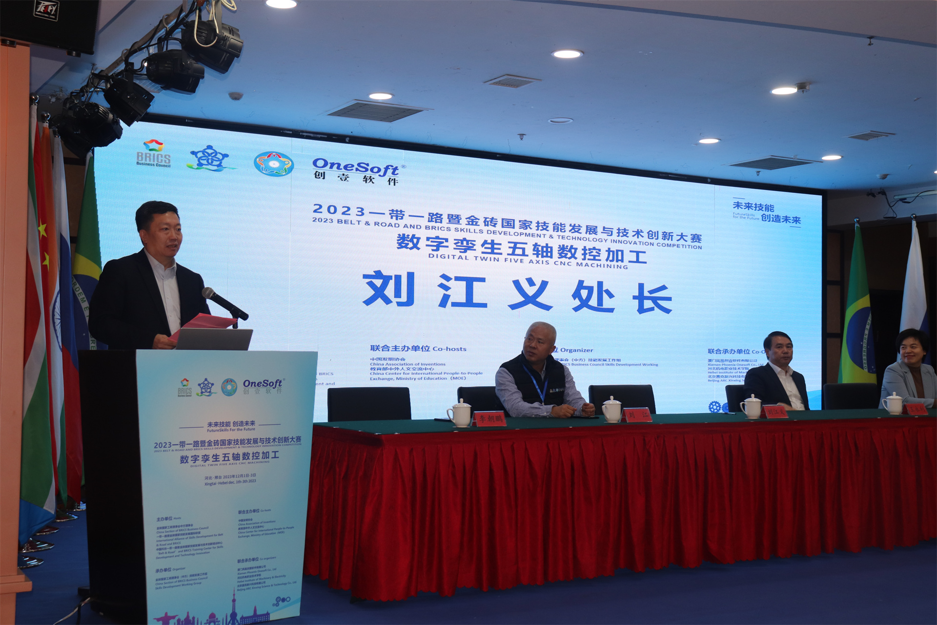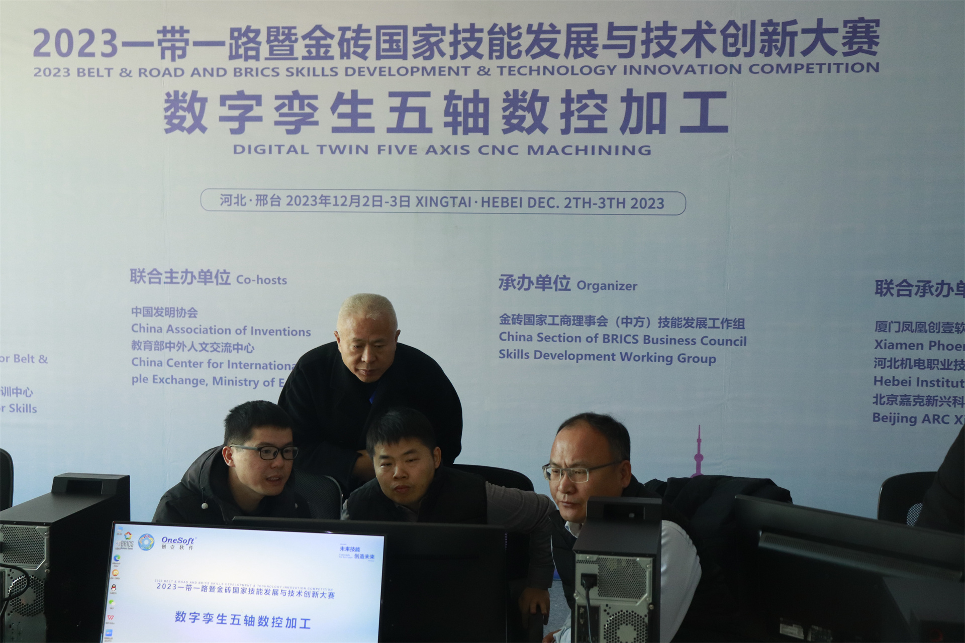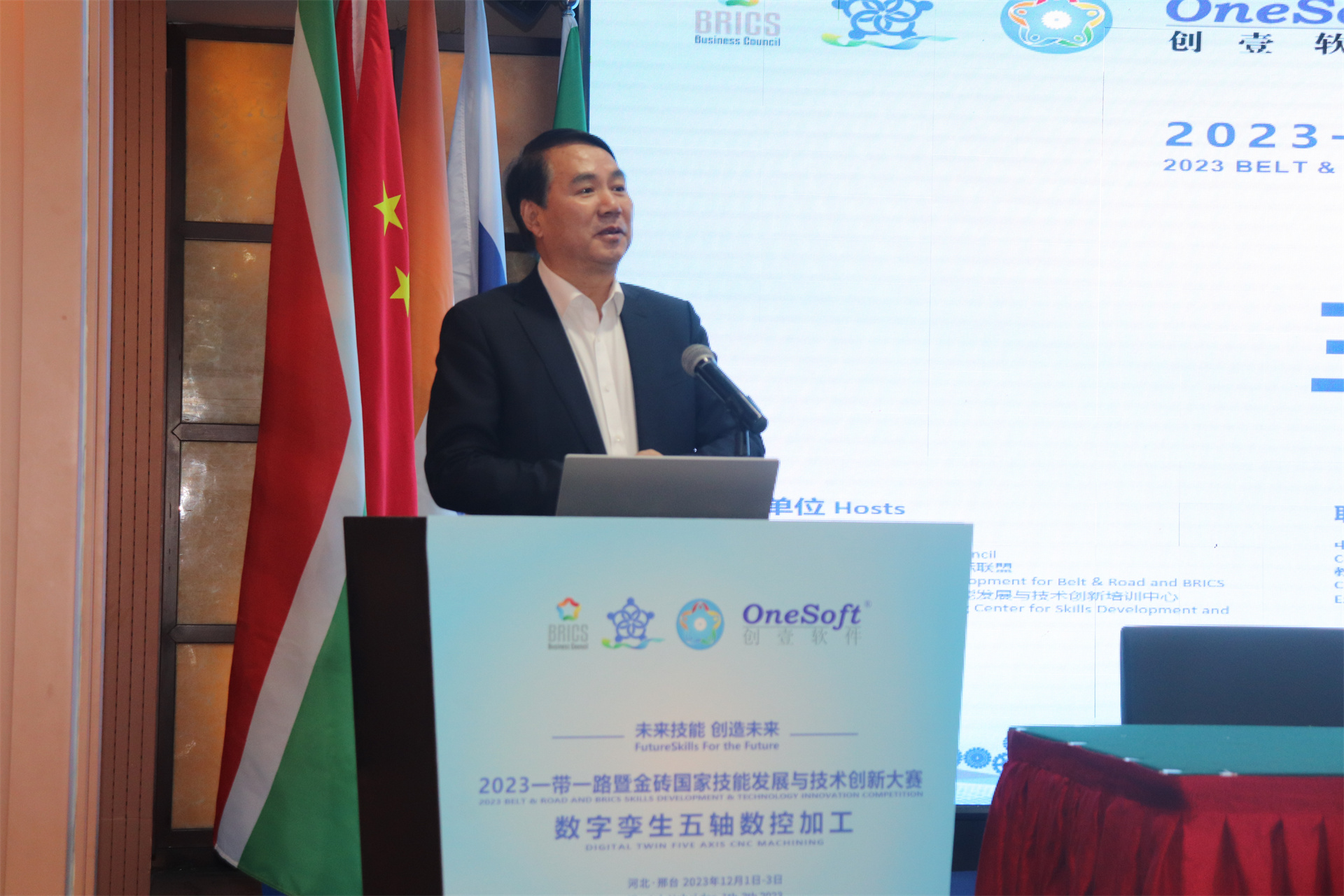 12月1日,2023一帶一路暨金磚國家技能發(fā)展與技術(shù)創(chuàng)新大賽數(shù)字孿生五軸數(shù)控加工賽項國內(nèi)決賽開幕式在萬峰大酒店舉行,由河北機電職業(yè)技術(shù)學院副院長李朝鵬主持。金磚國家工商理事會(中方)技能發(fā)展工作組組長、金磚國家技能發(fā)展與技術(shù)創(chuàng)新大賽組委會執(zhí)委會主席劉振英視頻致辭,中國教育國際交流協(xié)會副會長,前秘書長王永利、金磚國家技能發(fā)展與技術(shù)創(chuàng)新大賽組委會副主任何美連,河北省教育廳國際處劉江義處長、河北機電職業(yè)技術(shù)學院院長王曉鳳、廈門鳳凰創(chuàng)壹軟件有限公司運營總監(jiān)陳海寧等領(lǐng)導受邀出席并致辭。河北機電職業(yè)技術(shù)學院繼續(xù)教育部主任李成革、廈門鳳凰創(chuàng)壹軟件有限公司高級總監(jiān)江蕓梅等領(lǐng)導出席開幕式,仲裁長、總裁判長及裁判組成員、行業(yè)專家、參賽院校領(lǐng)隊、指導老師、參賽選手等近百人參加了開幕式。