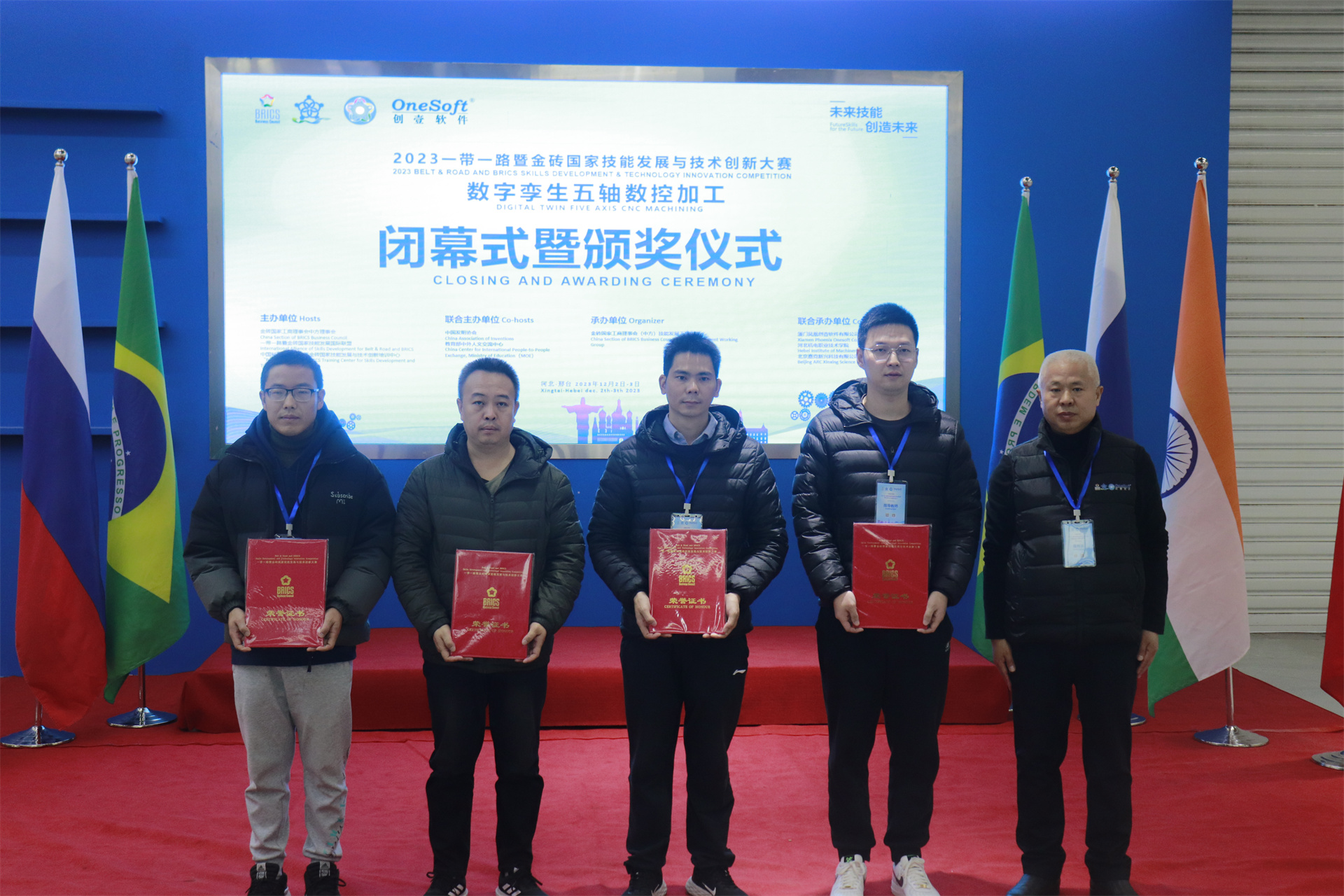 數(shù)字孿生五軸數(shù)控加工賽項于2023年7月開始組織籌備,歷經(jīng)技術(shù)方案評審、選手賽前培訓、裁判培訓,共有來自全國20多個省份49所院校200多名選手報名參加,最終36名選手進入全國總決賽。在河北機電職業(yè)技術(shù)學院展開為期2天的榮耀對決,群英匯聚展現(xiàn)新時代新職業(yè)新工種技能人才風采。最終決出一等獎4名、二等獎8名、三等獎11名、優(yōu)秀獎14名,優(yōu)秀指導老師12名,最佳組織獎4個,優(yōu)秀組織獎4個,突出貢獻獎2個,競賽支持獎1個。