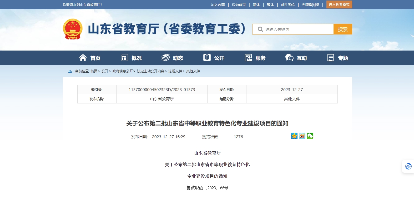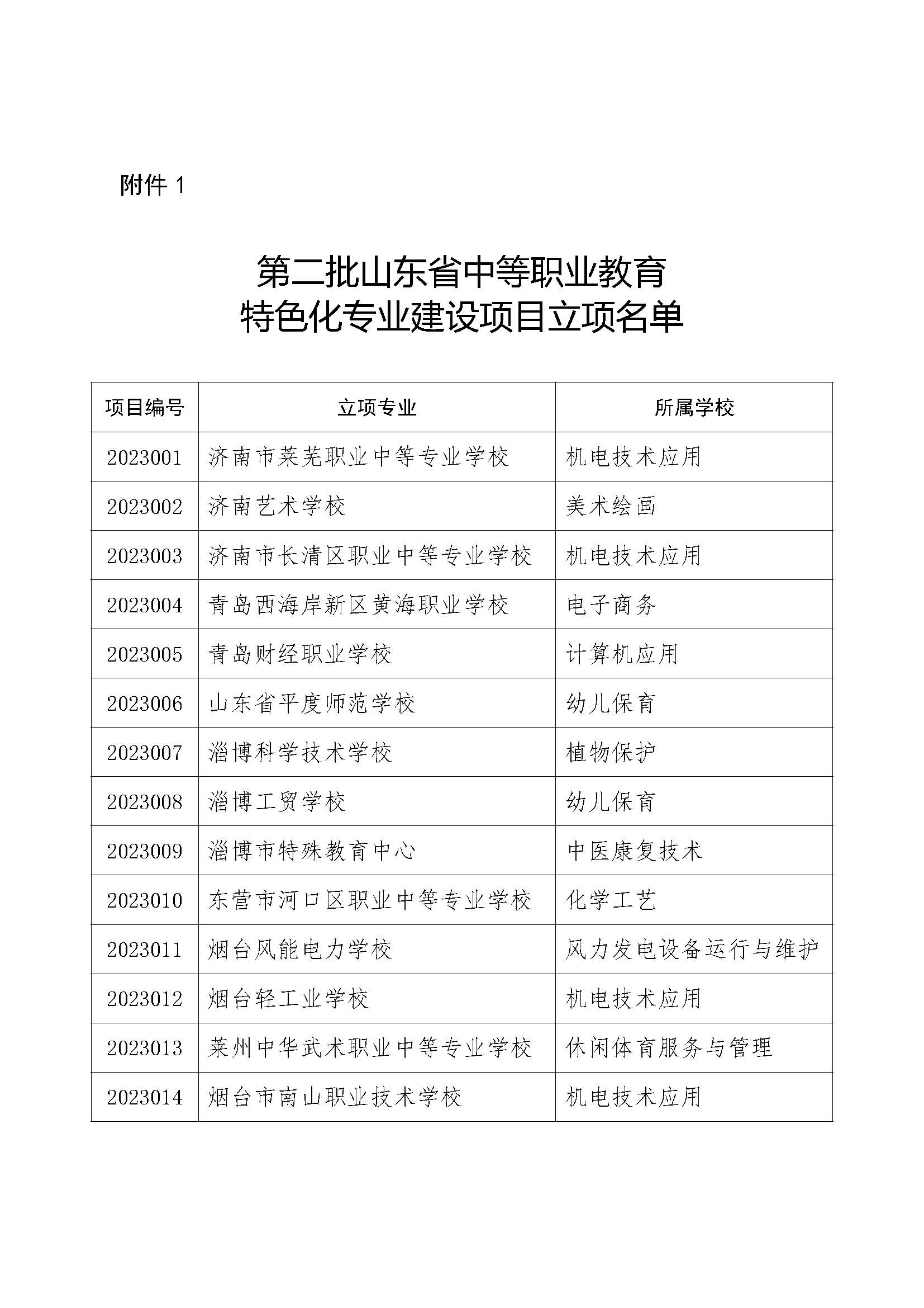 根據(jù)《山東省教育廳關于開展第二批山東省中等職業(yè)教育專業(yè)特色化建設項目申報工作的通知》(魯教職函〔2023〕43號)精神,經(jīng)學校申報、各市推薦、專家評審,確定濟南市萊蕪職業(yè)中等專業(yè)學校機電技術應用等36個專業(yè)為第二批山東省中等職業(yè)教育特色化專業(yè)建設項目,現(xiàn)將立項名單(附件1)予以公布,并將有關要求通知如下。
