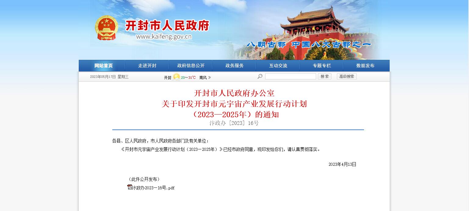 開封市印發(fā)《開封市元宇宙產(chǎn)業(yè)發(fā)展行動計劃 (2023—2025年)》