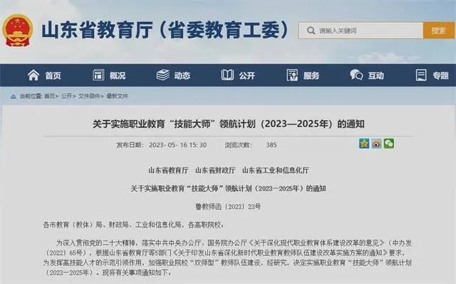 山東啟動職業(yè)教育“技能大師”領(lǐng)航計劃!