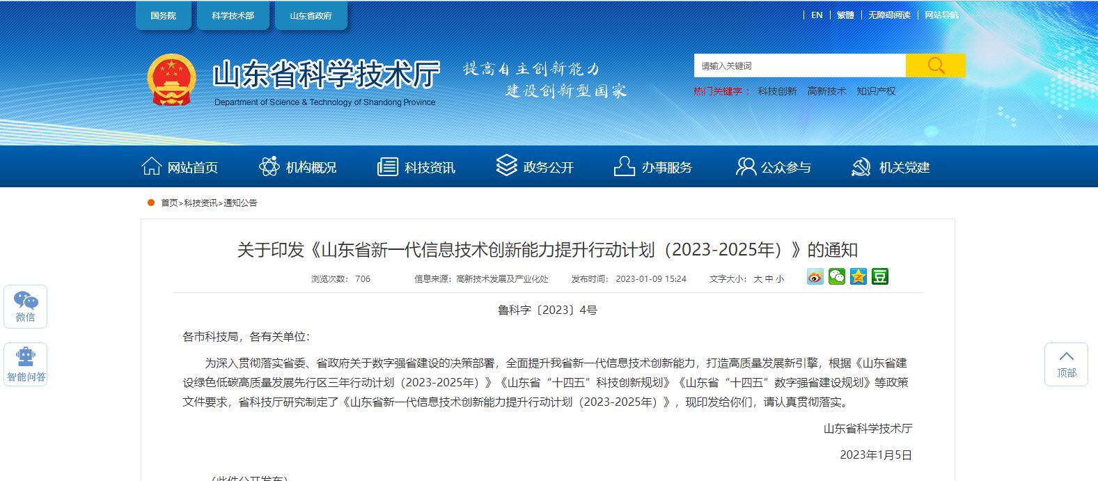 山東省印發(fā)《山東省新一代信息技術(shù)創(chuàng)新能力提升行動(dòng)計(jì)劃(2023-2025年)》的通知