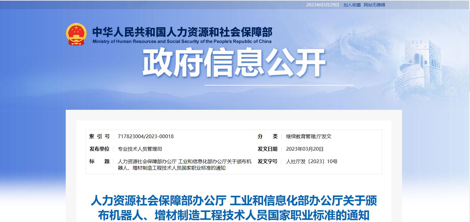 機(jī)器人、增材制造工程技術(shù)人員等4個(gè)國(guó)家職業(yè)標(biāo)準(zhǔn)頒布
