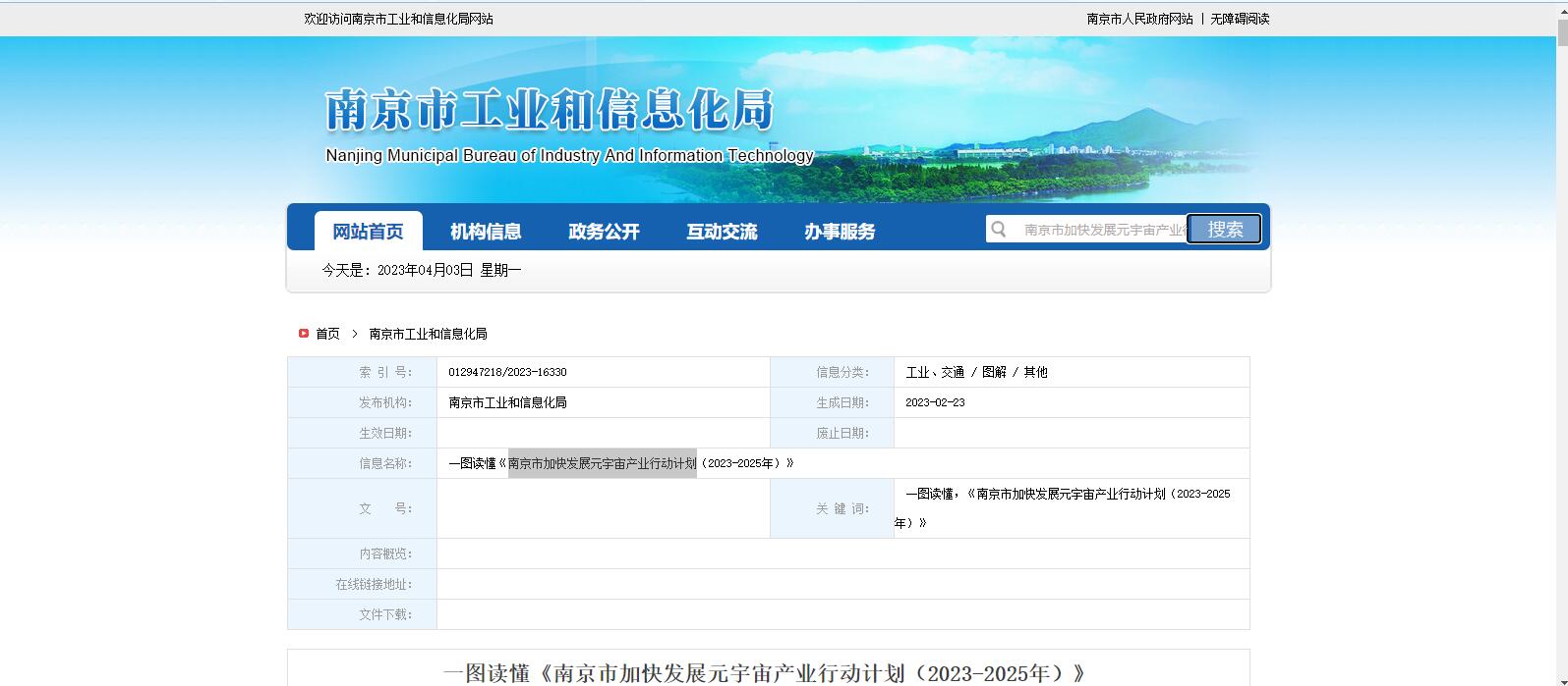 南京市工業(yè)和信息化局發(fā)布《南京市加快發(fā)展元宇宙產(chǎn)業(yè)行動(dòng)計(jì)劃(2023-2025年)》