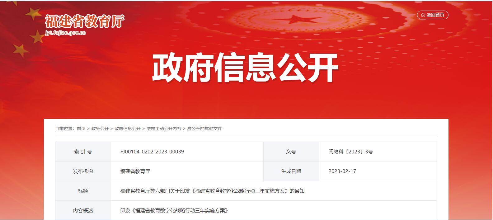 福建省教育廳等六部門(mén)關(guān)于印發(fā)《福建省教育數(shù)字化戰(zhàn)略行動(dòng)三年實(shí)施方案》的通知