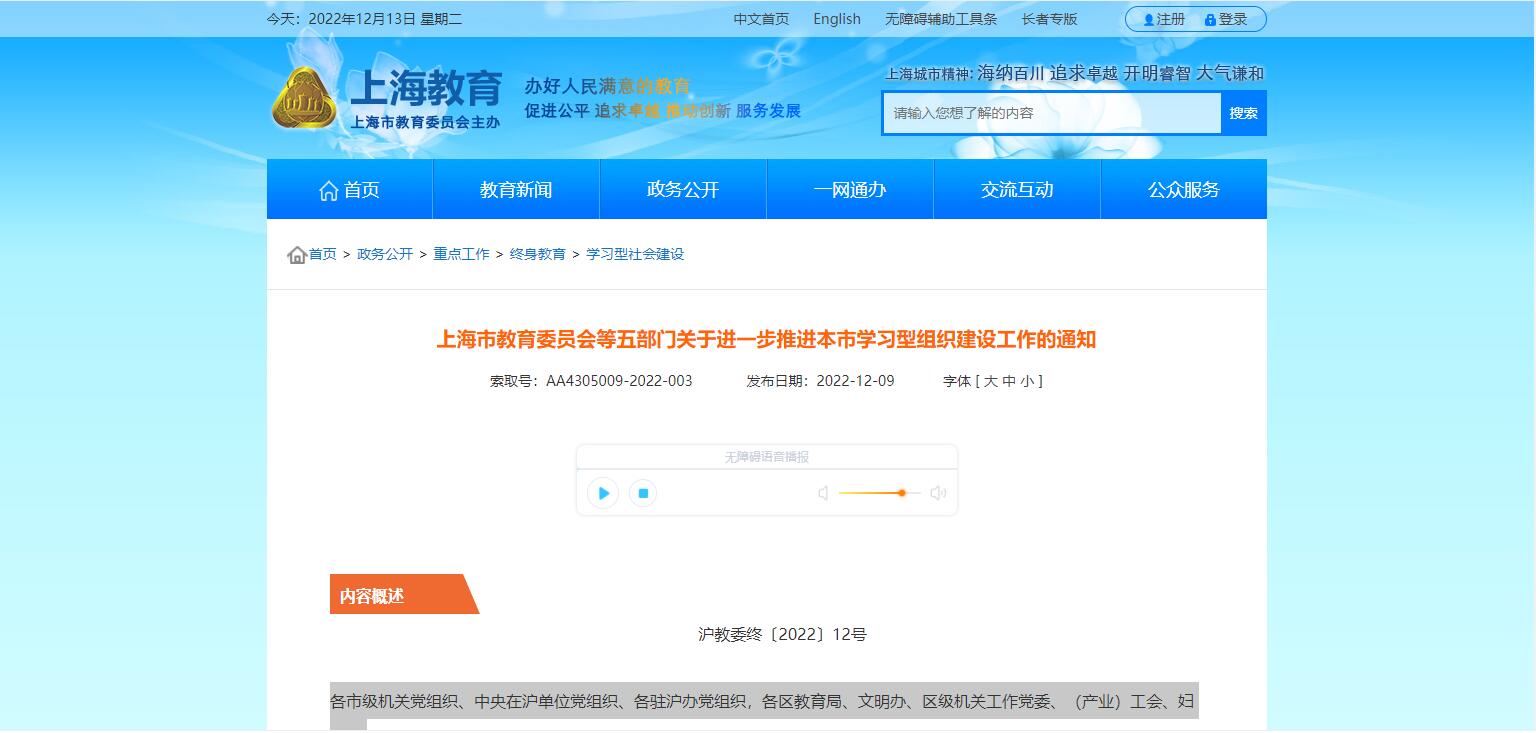 上海市教育委員會(huì)等五部門(mén)關(guān)于進(jìn)一步推進(jìn)本市學(xué)習(xí)型組織建設(shè)工作的通知