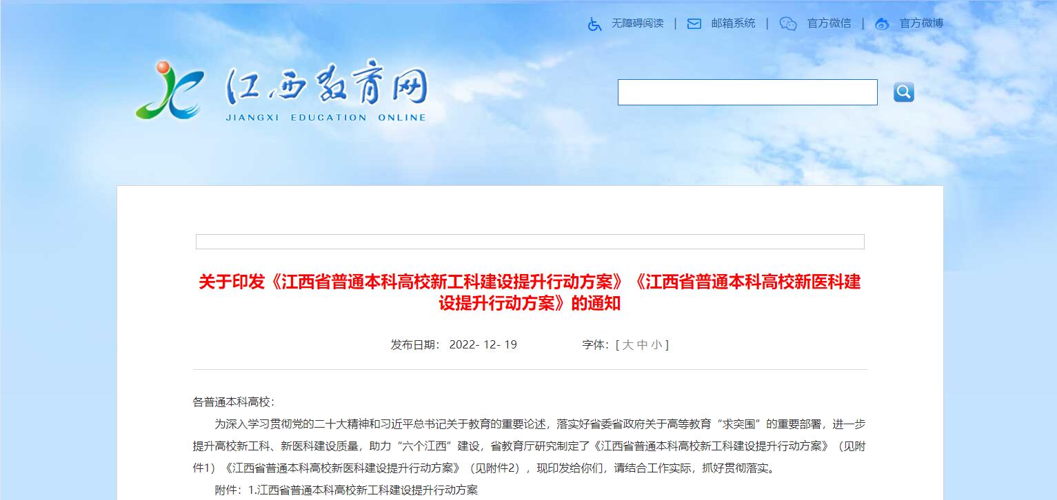 江西省教育廳發(fā)布《江西省普通本科高校新工科建設(shè)提升行動(dòng)方案》《江西省普通本科高校新醫(yī)科建設(shè)提升行動(dòng)方案》