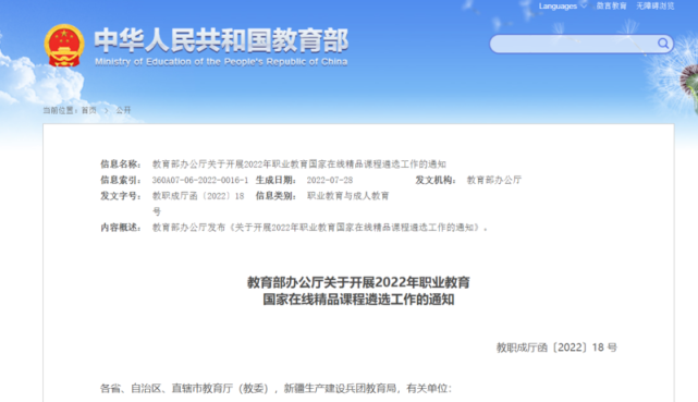 教育部:2022年遴選1000門(mén)左右職業(yè)教育國(guó)家在線精品課程