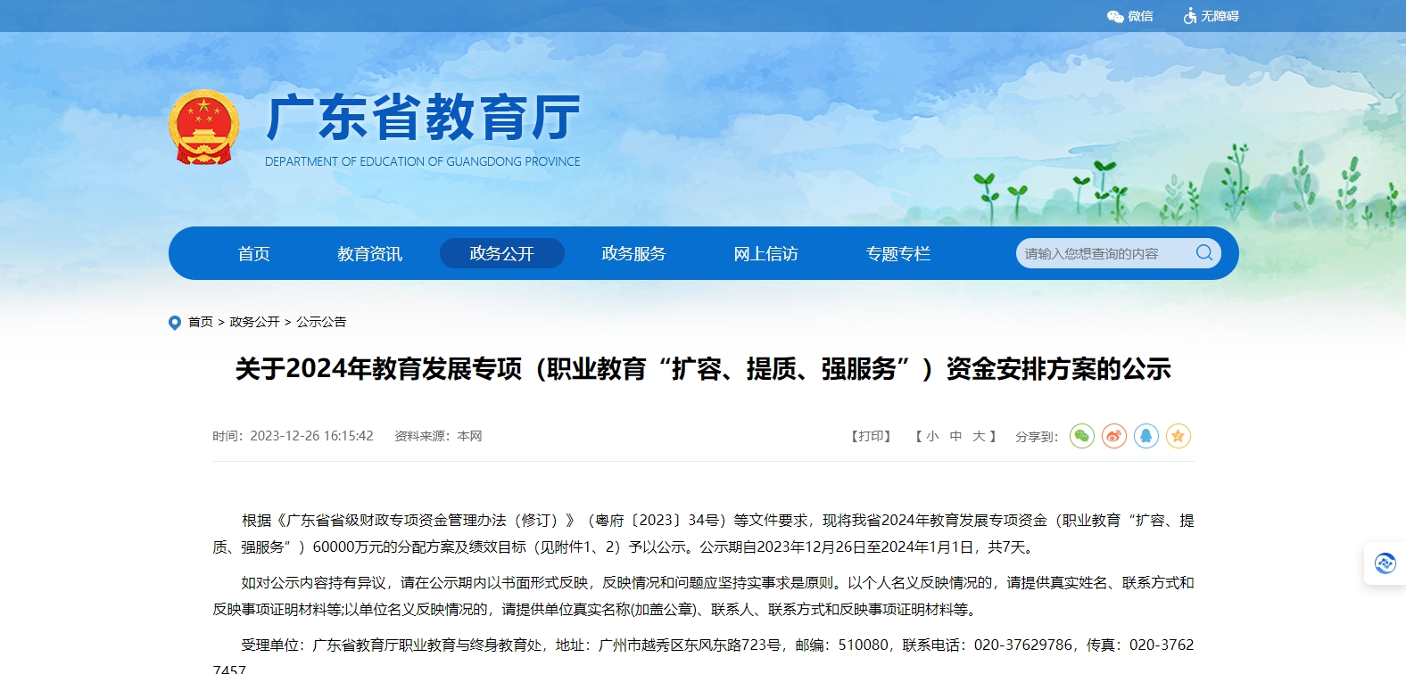 12月6日,廣東省教育廳公示了《關(guān)于2022年教育發(fā)展專項(職業(yè)教育“擴容、提質(zhì)、強服務(wù)”)資金安排方案》,擬安排5.991億元支持高職學(xué)校提水平、中職學(xué)校強發(fā)展。 ......